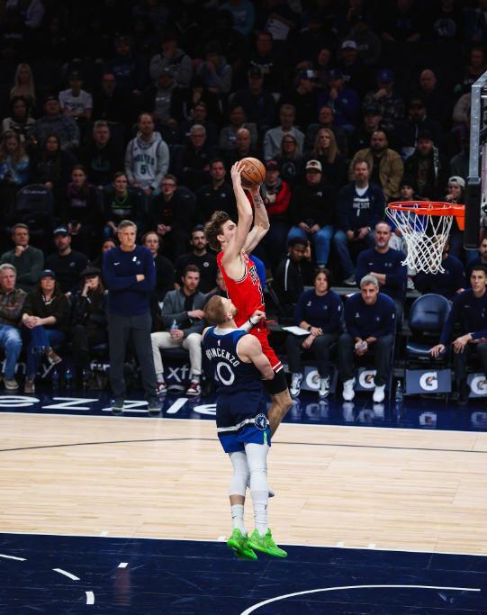 公牛核心吉迪此战复出,有了他坐镇公牛的整体进攻明显更加流畅,但是在球星的统治力方面,明显森林狼更胜一筹,前两节兰德尔就内外开花,砍下了15分,此外还送出了2次助攻,爱德华兹在受到犯规困扰的情况下,也在上半场拿到了12分,在双核的率领下,森林狼带着1分的微弱领先,回到了中场更衣室。