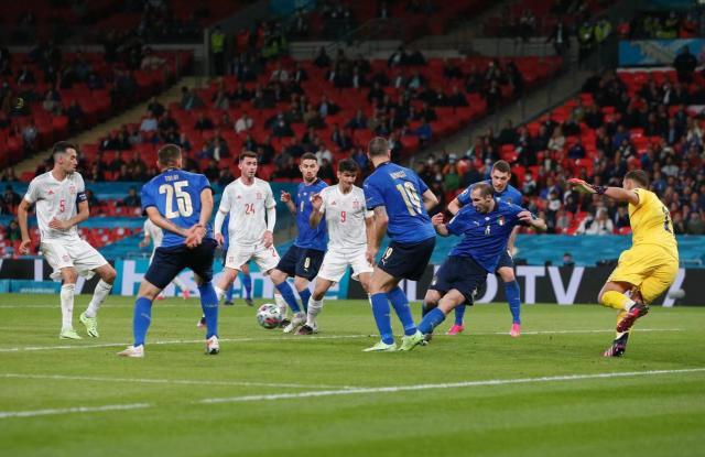 英格兰还是丹麦?这并不重要,至少在7月6日的夜晚是这样。曼奇尼的意大利队以非凡的表现进入了欧洲杯决赛,这是和西班牙120分钟苦战之后的结果。奥尔莫是全场表现最出色的球员,莫拉塔进球帮助西班牙扳平了比分,但正是这两人在点球大战中失手,意大利闯入了温布利的决赛。